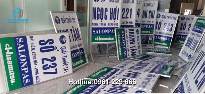 • Chất liệu làm biển thường là: Mica, fomex, alu hoặc inox....
